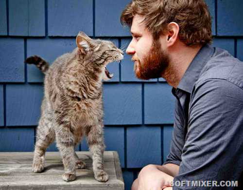 Однако в их доме живёт ещё один смышлёный питомец – кошка, которая, видимо, думает, что она собака.